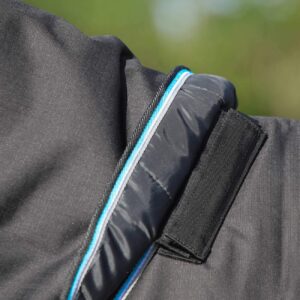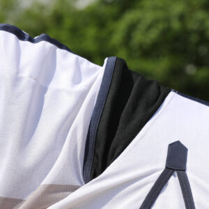 Vybavená chvostovou chlopňou, krížovými popruhmi pod bruchom s elastickými vsadkami a predným zapínaním na dve karabíny a suchý zips.